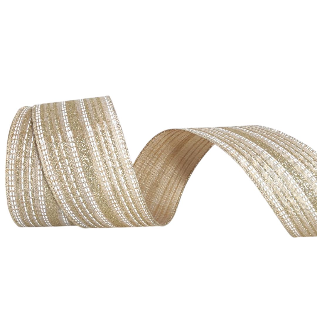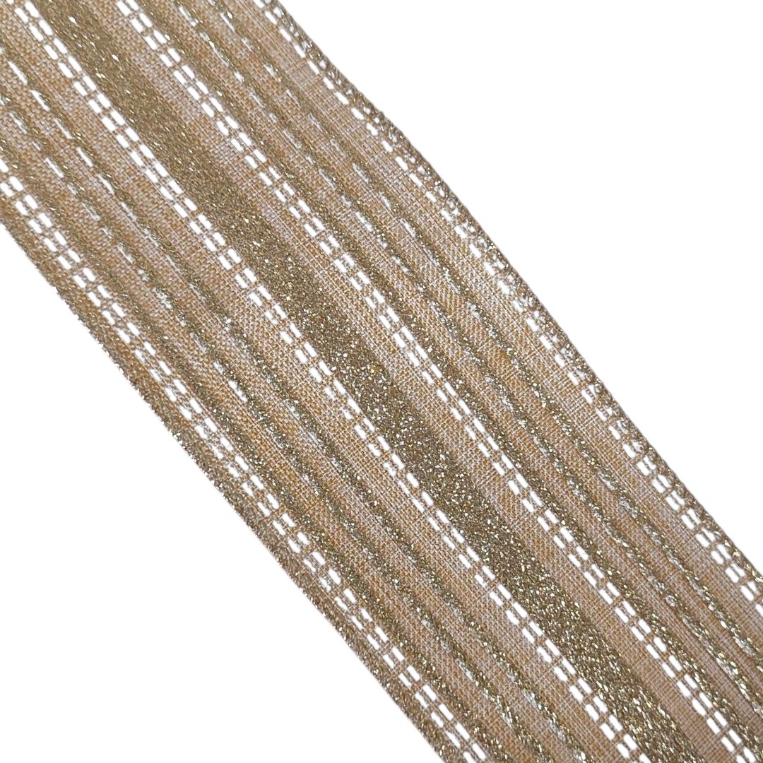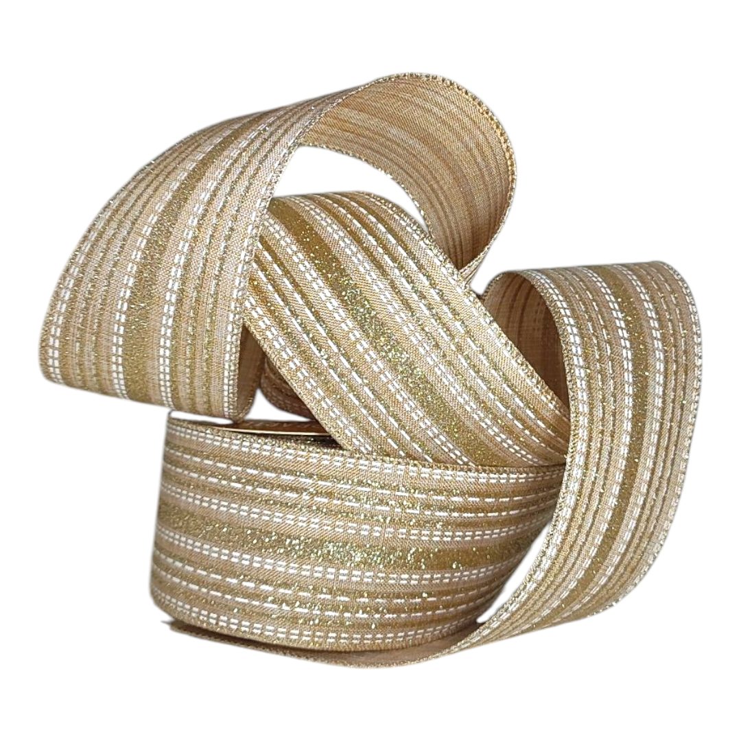 Essa linda fita trás sutileza e delicadeza ás decorações com sua coloração de Bege e Champanhe, trazendo também volume com suas linhas pontilhadas em branco.
