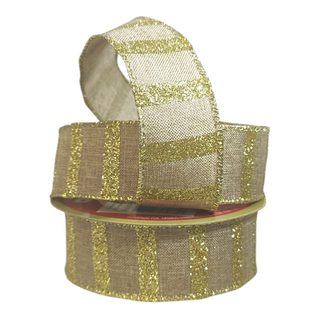 Fita Juta Listras com gliter